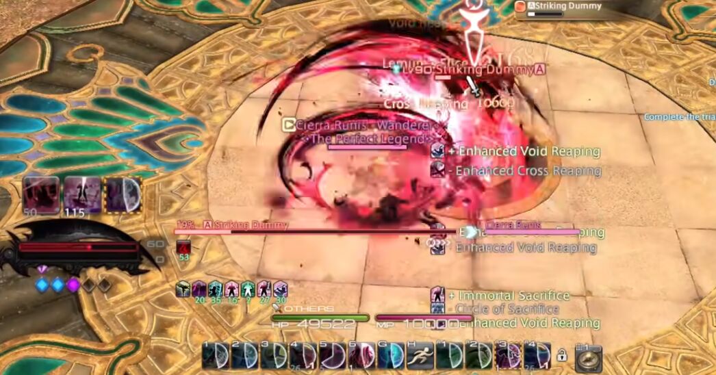 钐镰客上手就是70级,省去了练级的烦恼,技能的循环相较于其他职业略简单,且手感不错,不像龙骑一样有跳跃硬直,打起来简单舒服。并且作为新出的两大职业之一,制作人吉田给镰刀加了很多特效招式,强是一个版本的事,但帅是一辈子的!