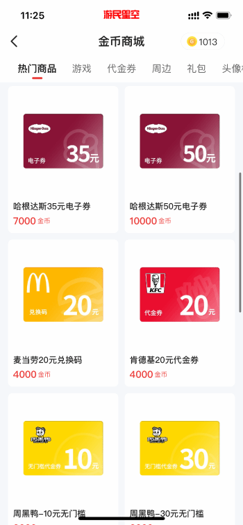 金币商城每周二至四中午12点准时上架Steam充值卡和各类餐饮券等,大家来逛逛哦~ 也欢迎游民老哥们在评论区留言,说说哪些礼品是你们打算兑换或已经兑换的,哪些是“大可不必”的(狗头)!