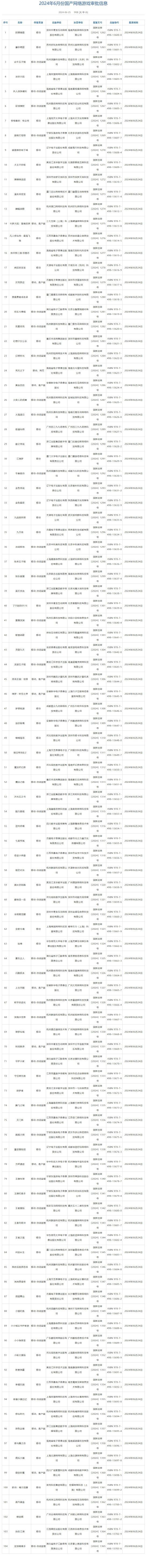 国家新闻出版总署公布了《2024年6月份国产网络游戏审批信息》,《洛克王国:世界》《凡人修仙传:星海飞驰》《逆向坍塌》《斗罗大陆:猎魂世界》《如鸢》等104款游戏过审。
