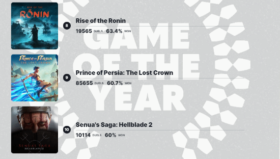 IGN US举行了“今年为止你心中的年度游戏”评选,包括FF7RE、黄金树幽影、《龙之信条2》等作品参选。