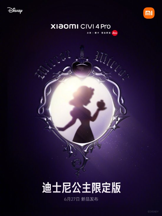 今日(6月25日),小米正式公布 Civi4 Pro 迪士尼公主限定版手机,号称超“上镜”的定制手机,将于6月27日发布。