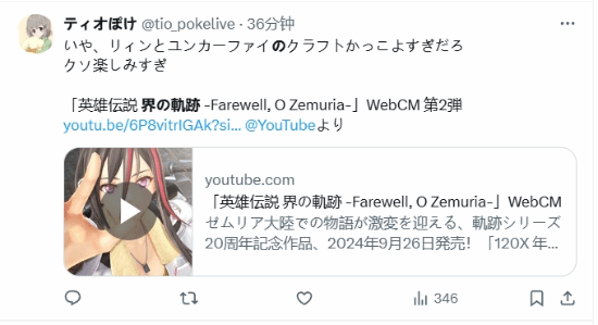 6月25日,《英雄传说:界之轨迹》的WebCM2疑似于今日意外提前公开,目前该视频已经被官方Youtube频道隐藏,不过仍有一些玩家看到了视频内容。