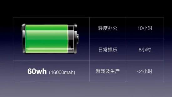 玲珑键盘迷你主机配备一块 60Wh (16000mAh) 电池,在轻度办公场景下拥有 10 小时的续航。