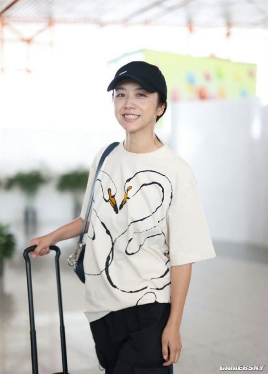汤唯素颜赶飞机 搞怪合影毫无偶像包袱