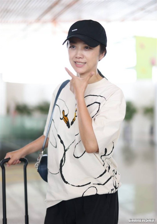 当天她身穿简单白色印花T恤搭配宽松黑色裤子和黑色帽子,打扮低调又休闲,素颜出镜对镜头打招呼,搞怪合影毫无偶像包袱。