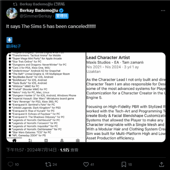 近日,推特上有玩家发文爆料称《模拟人生5(The Sims 5)》已被取消,“Project Rene”开发人员已重新转移到前作上。