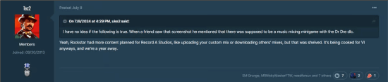 近日,专注于R星游戏消息的内部人士Tez2在论坛中表示,《GTA6》可能会加入一个重要的音乐玩法,而该玩法原本打算上线《GTA Online》。