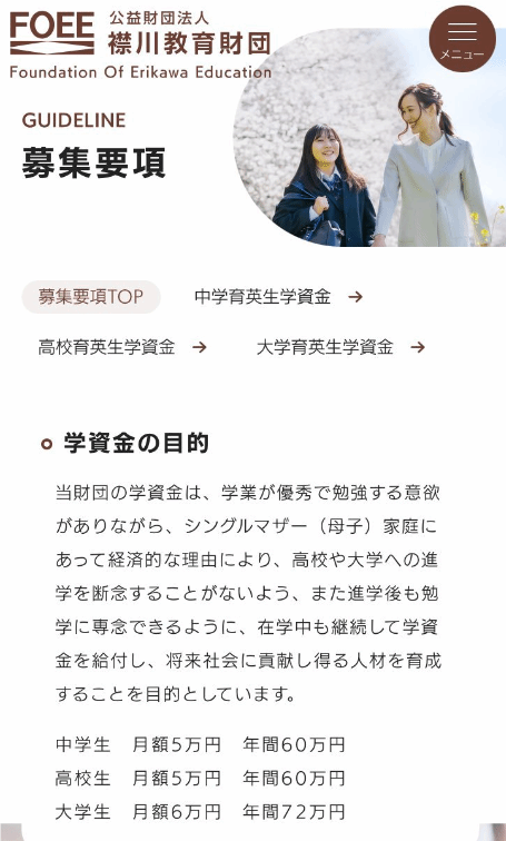 每位学生能享受到的无需偿还的奖学金份额:中学——每年60万日元;高中——每年60万日元;大学——每年72万日元。救助名额将于今年10月开放征集。